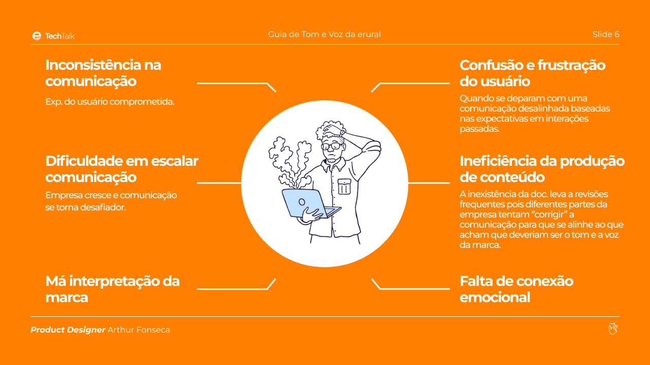 Capa da apresentação feita ao time de Produto da erural sobre Guia de Tom e Voz da empresa