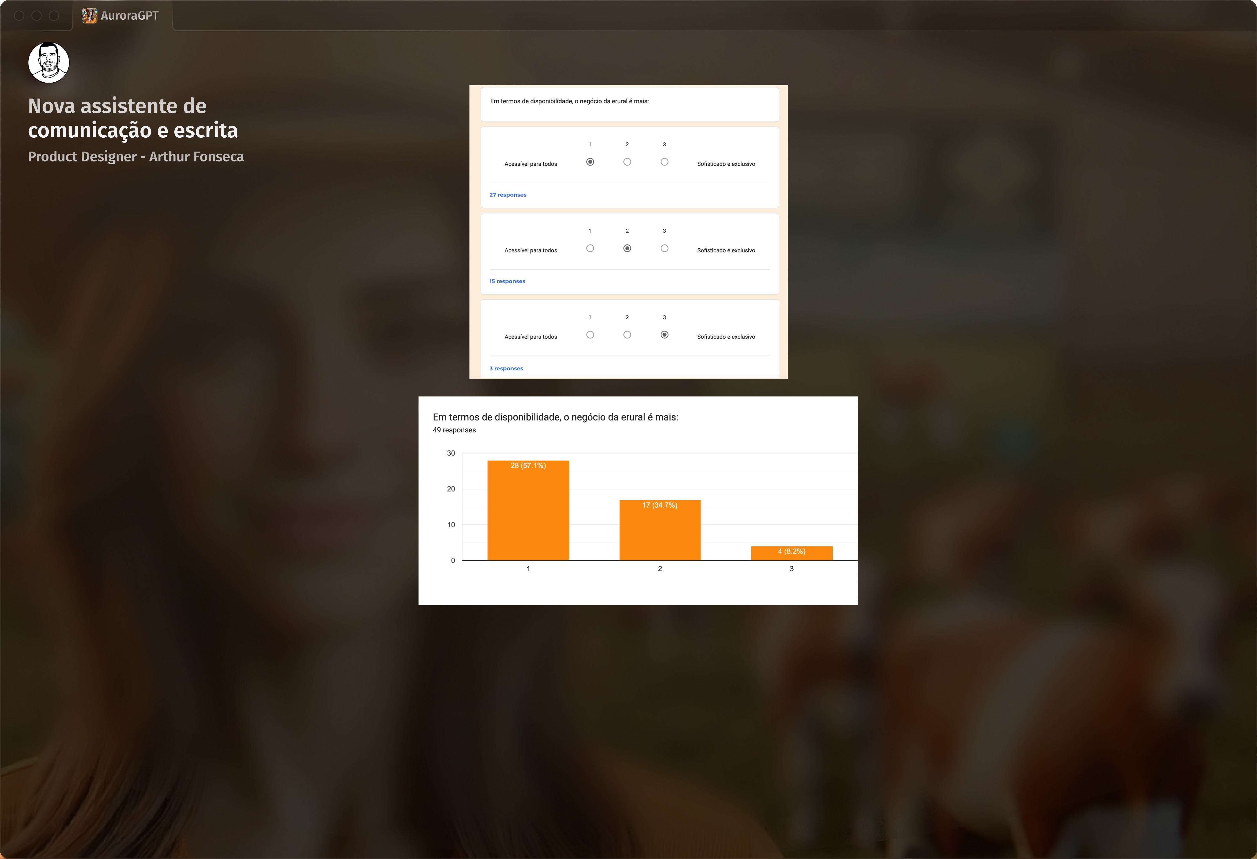 A Aurora conecta-se ao ecossistema inteiro: do atendimento comercial a e-mails, chatbots, redes sociais, UX Writing de produtos (como o marketplace e o erural pay). O desafio foi equilibrar simplicidade e inovação, criando uma solução eficaz e acolhedora, alinhada aos valores e à cultura organizacional.