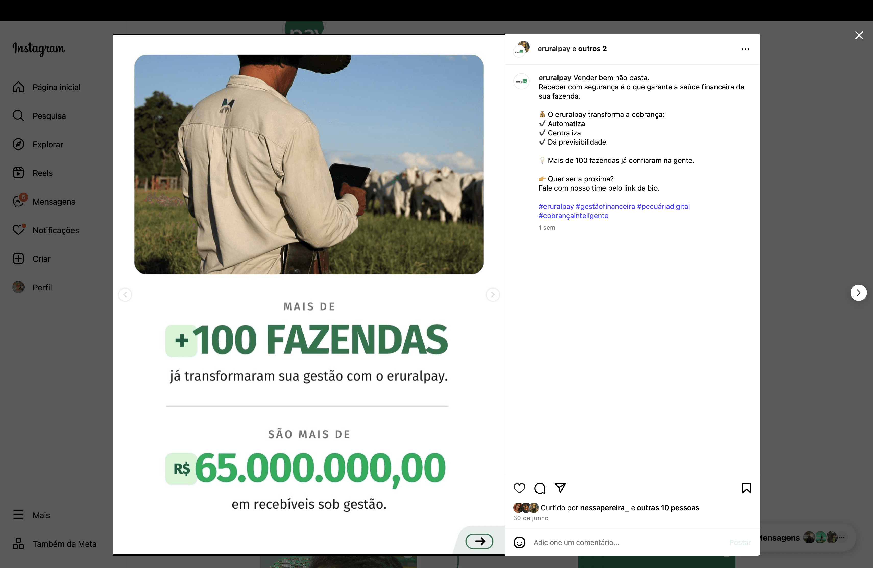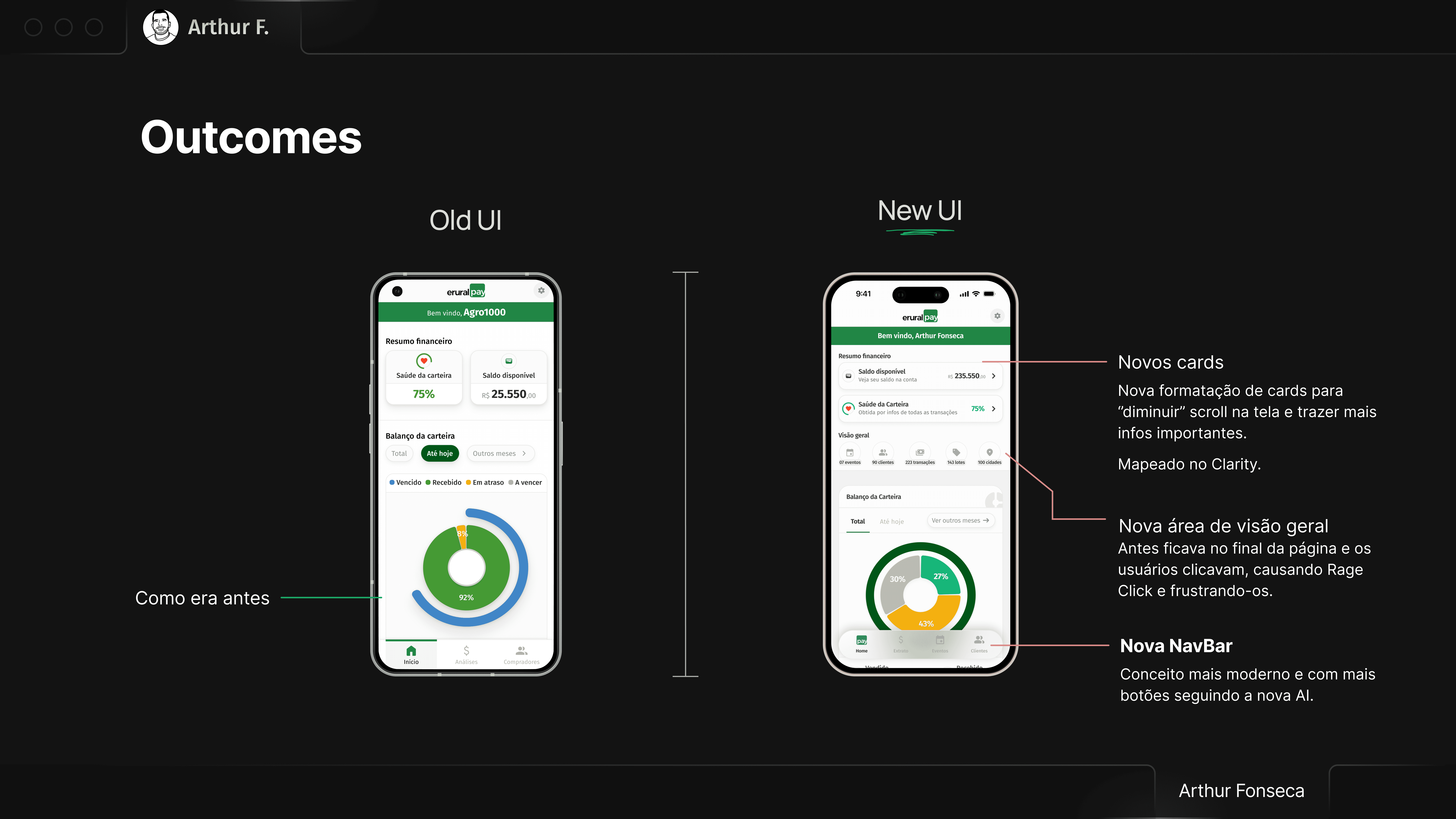 O resultado final do erural pay entregou valor e gerou ótimo impacto, superando expectativas iniciais do projeto. Desenvolvemos um produto digital não apenas visualmente elegante, mas que realmente fizesse sentido à vida do usuário: