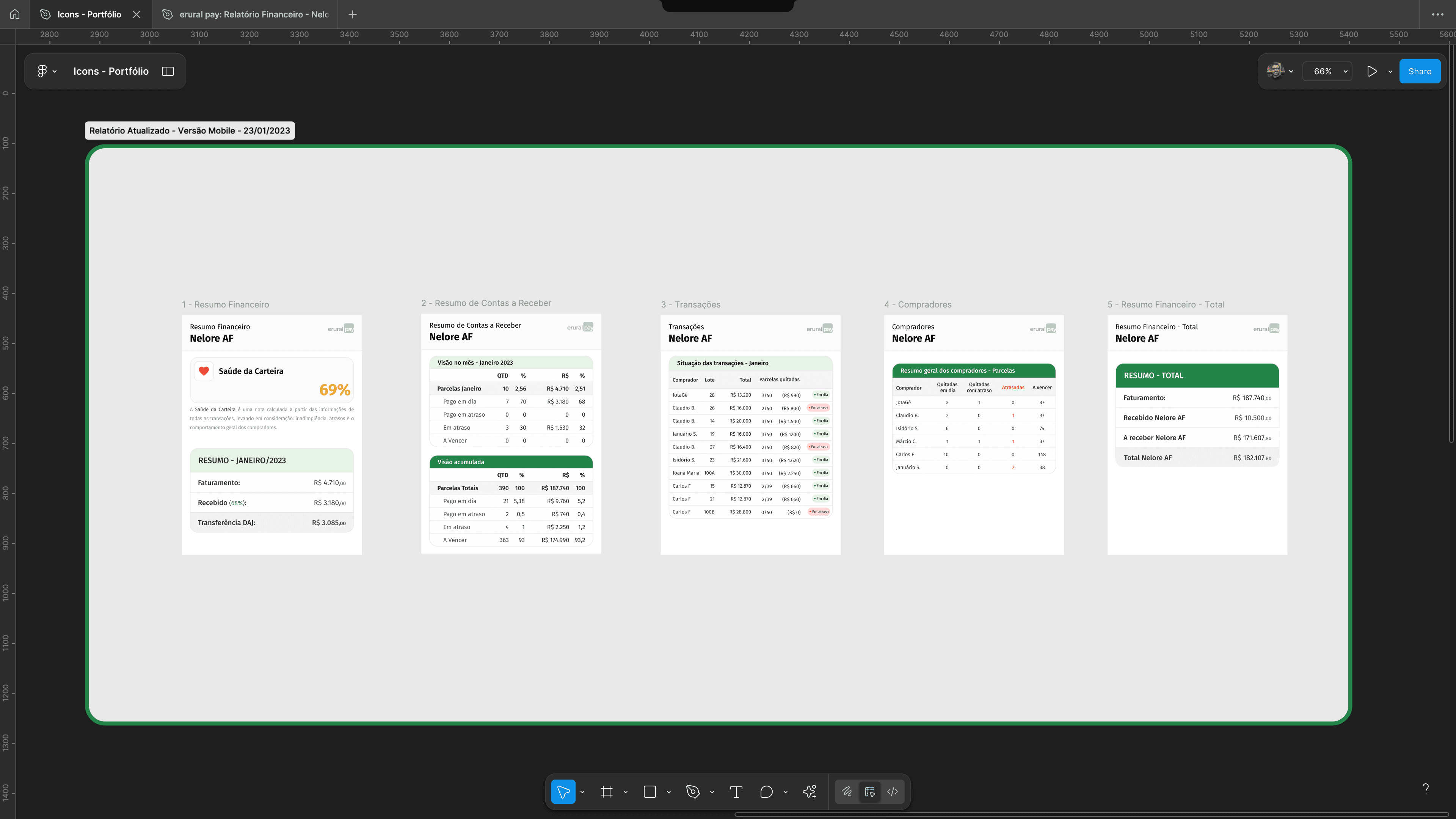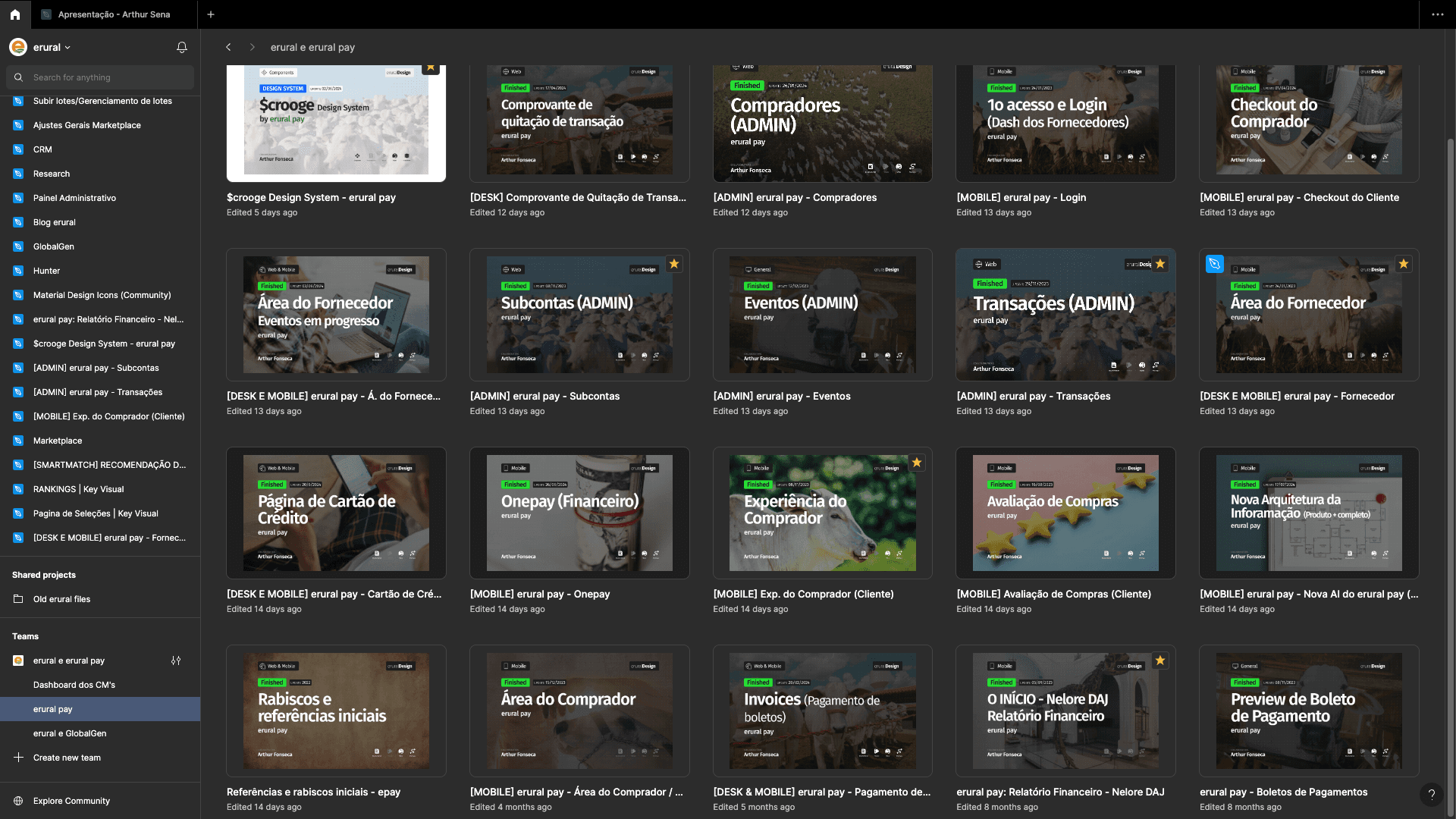 Durante o desenvolvimento, criei e mantive uma estrutura escalável dentro do Figma para garantir fluidez entre design, produto e desenvolvimento. Organizei os arquivos por módulos funcionais (como $crooge Design System, Compradores, Fornecedores, Subcontas, Transações etc), separando por tipo de plataforma (Mobile e Desktop) e sinalizando o status de cada entrega (In progress, Finished, Dev Ready), o que ajudou na priorização e visibilidade do time.