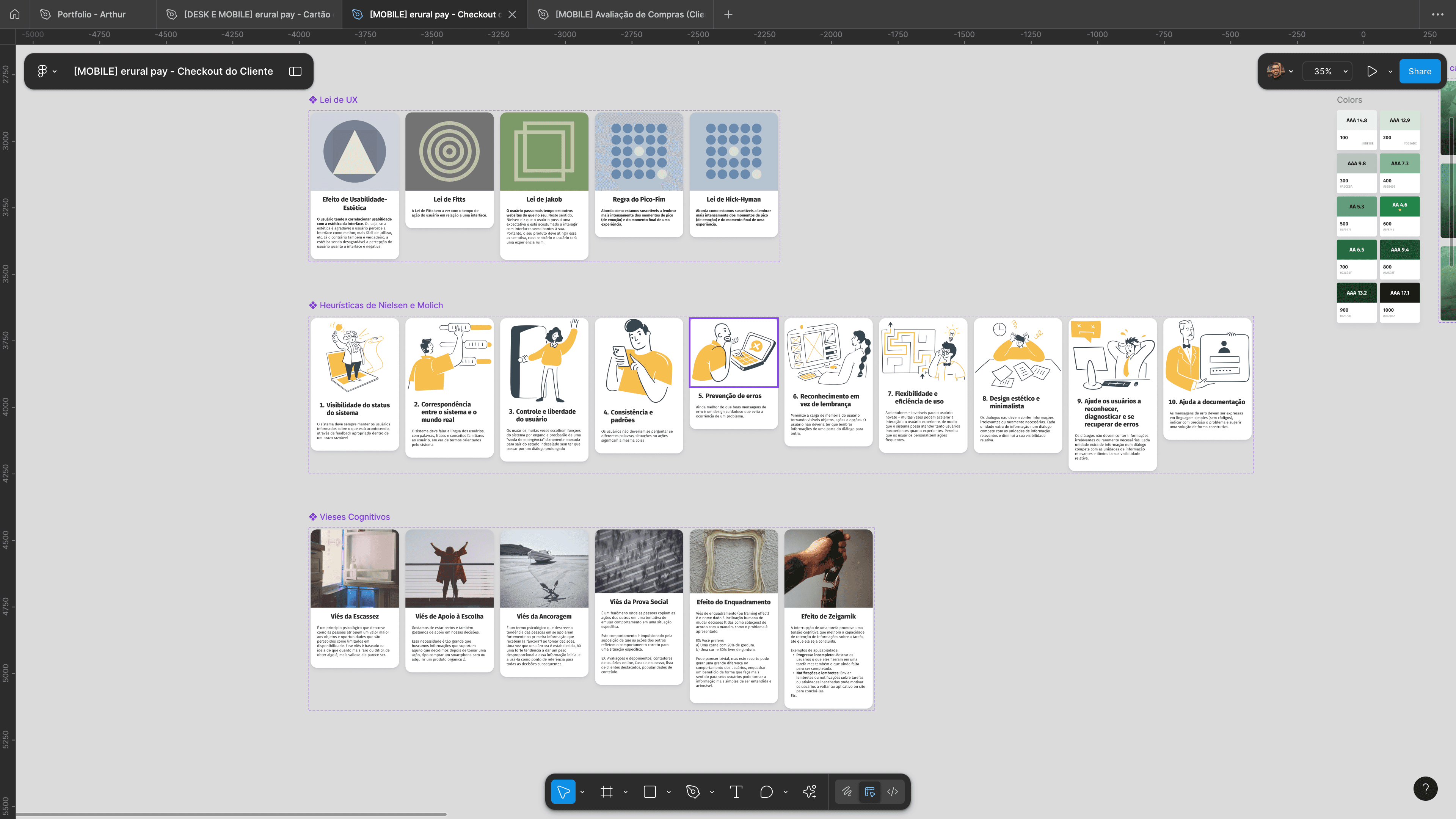 Cards de Leis de UX, Heurísticas de Nielsen e Vieses Cognitivos fazem parte da construção do meu processo de trabalho.