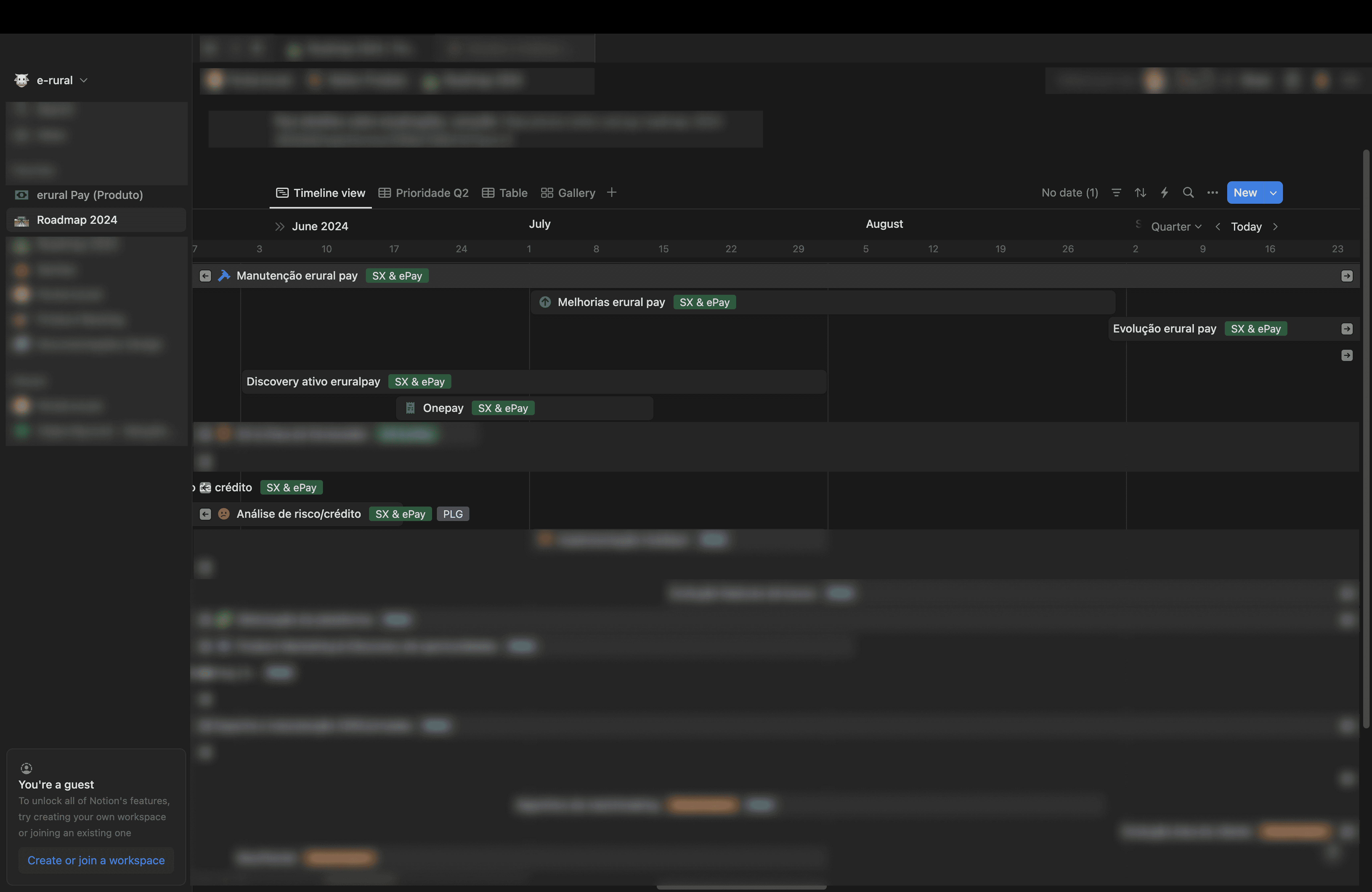 Imagem do roadmap de Produto destacando algumas frentes do erural pay.