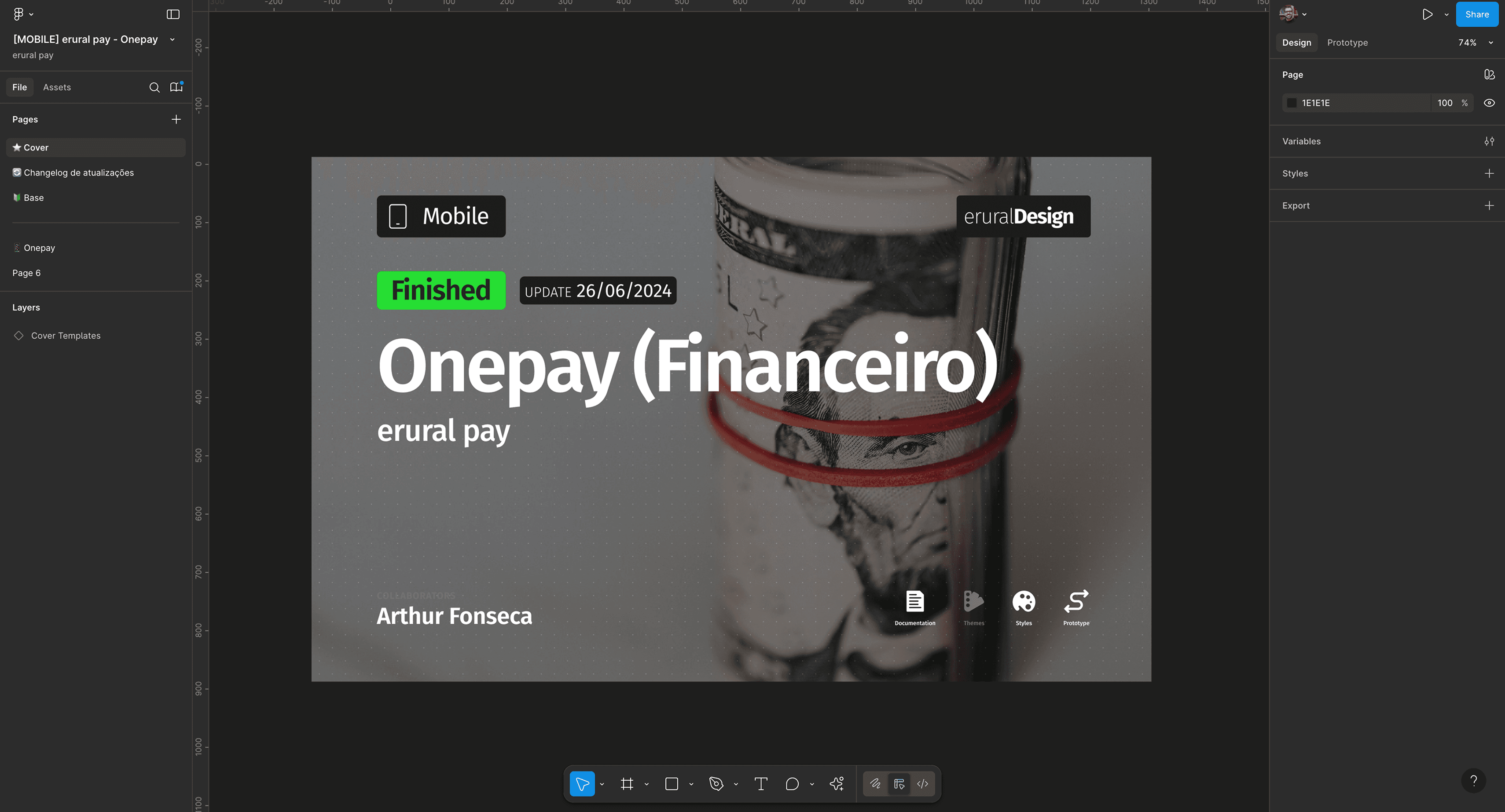 Imagem mostrando organização e o cover do onepay na pasta do Figma.